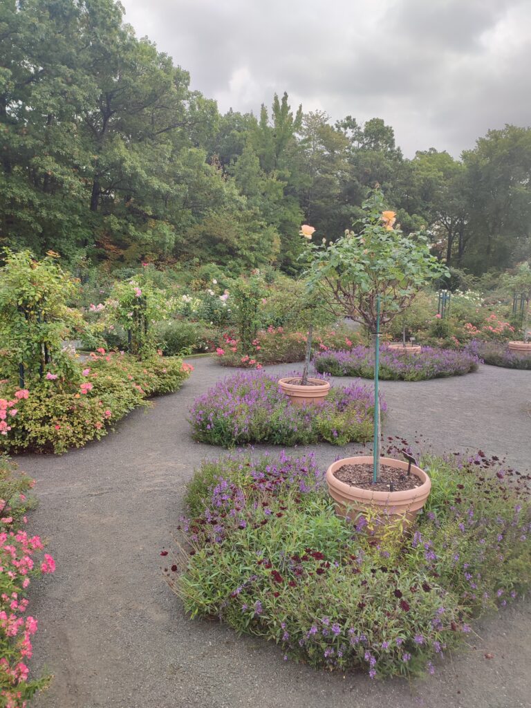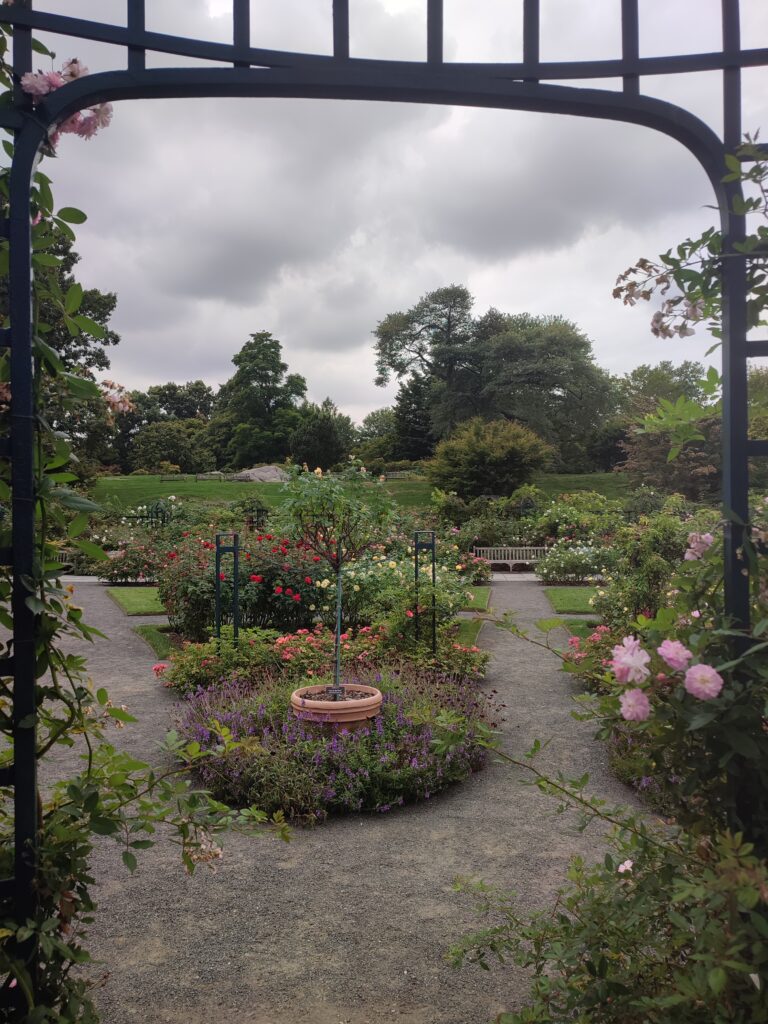 U bašti se nalazi rijeka Bronks, jezera, starosjedilačka šuma, površine za piknik, kao i brojne kolekcije i tematski vrtovi. Pošto je naša posjeta bašti počela na istočnoj kapiji, prvi tematski vrt na koji smo naišli je bio Peggy Rockefeller ružičnjak.