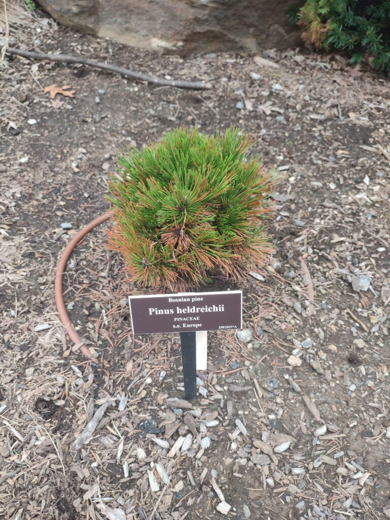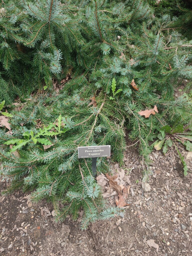 Među četinarima naiđosmo i na naše gore listove ‒ različite kultivare omorike i jedan primjerak munike, doduše, nimalo reprezentativan. Svejedno, njihovo prisustvo nas na trenutak učini ponosnima.